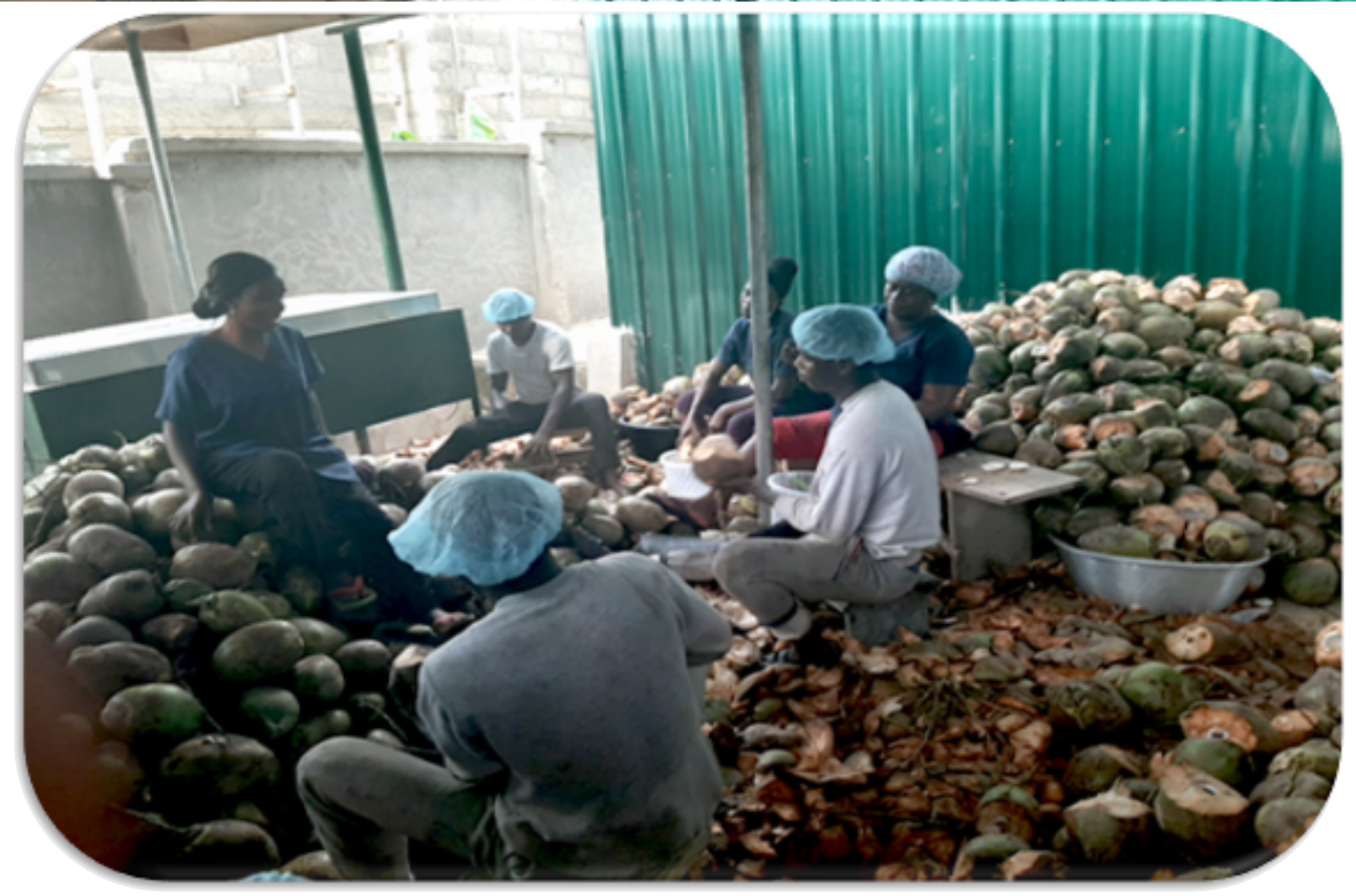 Michael started Melach Coconut Processing Farm with 3 women at his veranda at Awoshie, in Accra. One of these three women is a disable.